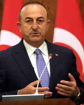 Foto: Il ministro degli Esteri turco Mevlut Cavusoglu in una recente conferenza stampa sulle conseguenze della svolta a Kabul – Amman, 17 agosto 2021 (AFP).