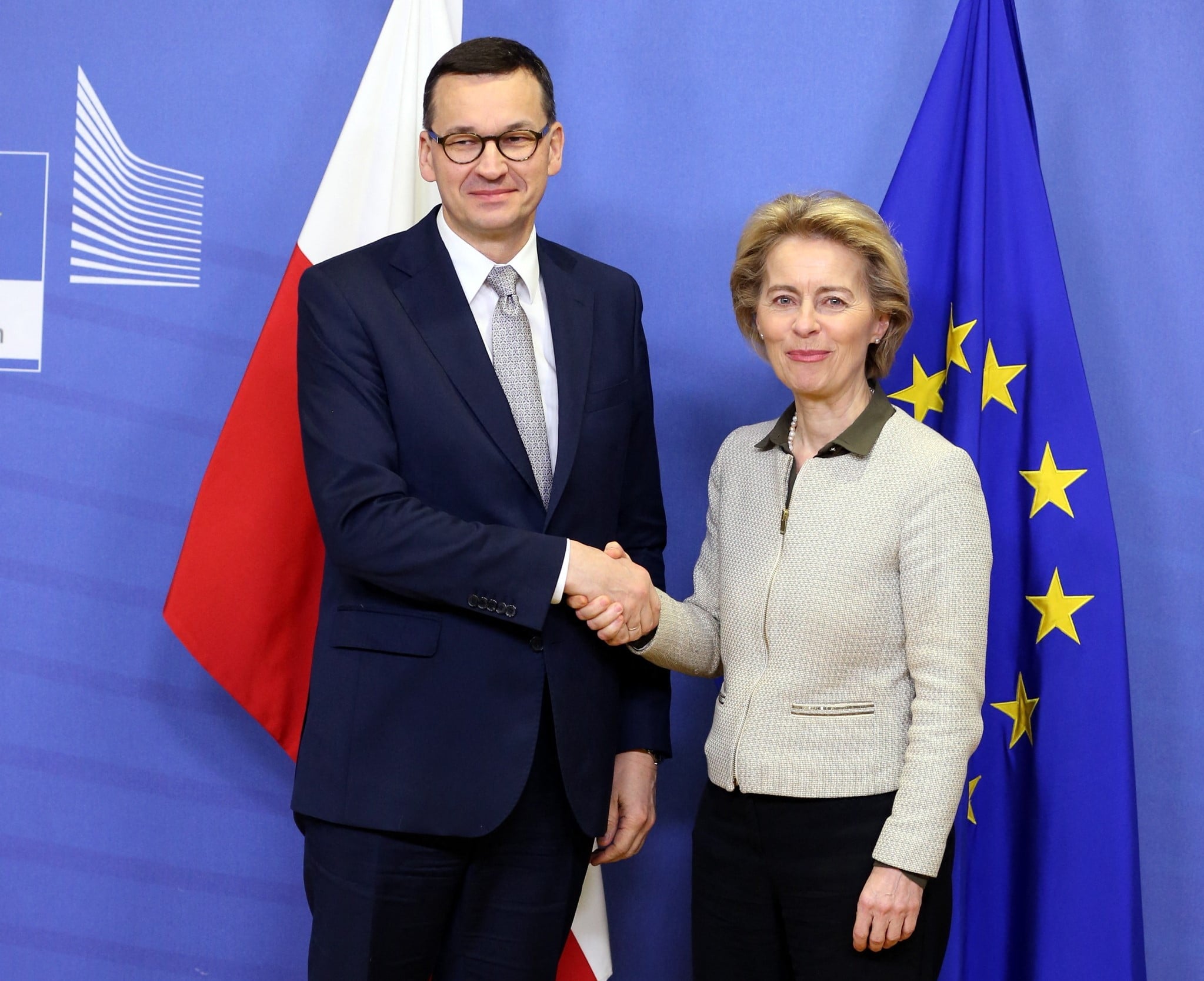 Foto: Il premier polacco Mateusz Morawiecki con la presidente della Commissione europea Ursula Von der Leyen (D. Aydemir / Anadolu Agency via AFP).