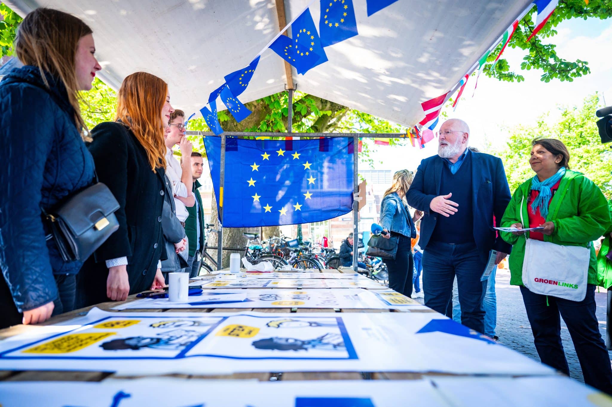 Immagine di copertina: il leader di GroenLinks-PvdA Frans Timmermans durante un incontro elettorale per la campagna delle elezioni europee 2024 a Leida. Foto di Josh Walet / ANP MAG / ANP via AFP.