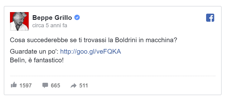 «E tu, che cosa faresti in macchina con la Boldrini?», aizzava con ironia grottesca Beppe Grillo sul proprio, seguitissimo, blog esattamente cinque anni fa. Il leader della Lega Salvini colse al balzo la proposta e innalzò a stretto giro l’avversaria a “nemica del popolo” numero uno. Quale miglior gioco di specchi per testare l’alleanza di ferro che sarebbe presto sorta?