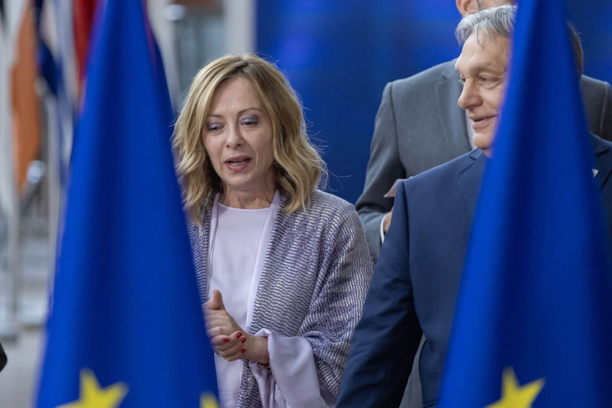 Immagine di copertina: Giorgia Meloni e il primo ministro ungherese Viktor Orban a un summit del Consiglio europeo a Bruxelles, Belgio, il 27 giugno 2024. Foto di Nicolas Economou / NurPhoto via AFP.