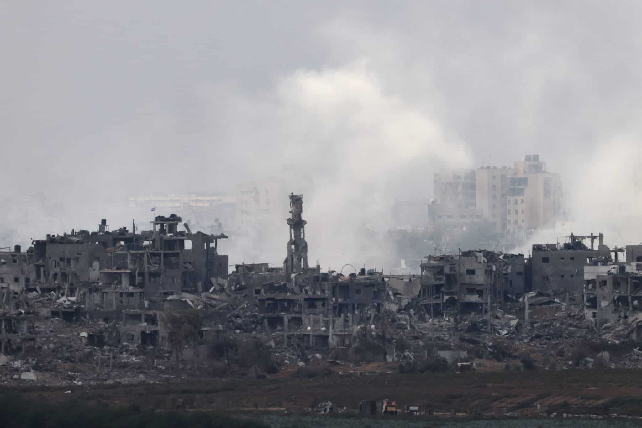 Foto di copertina scattata al confine con la striscia di Gaza vista dal sud di Israele. 14 novembre 2023 (foto di Jack Guez/Afp).