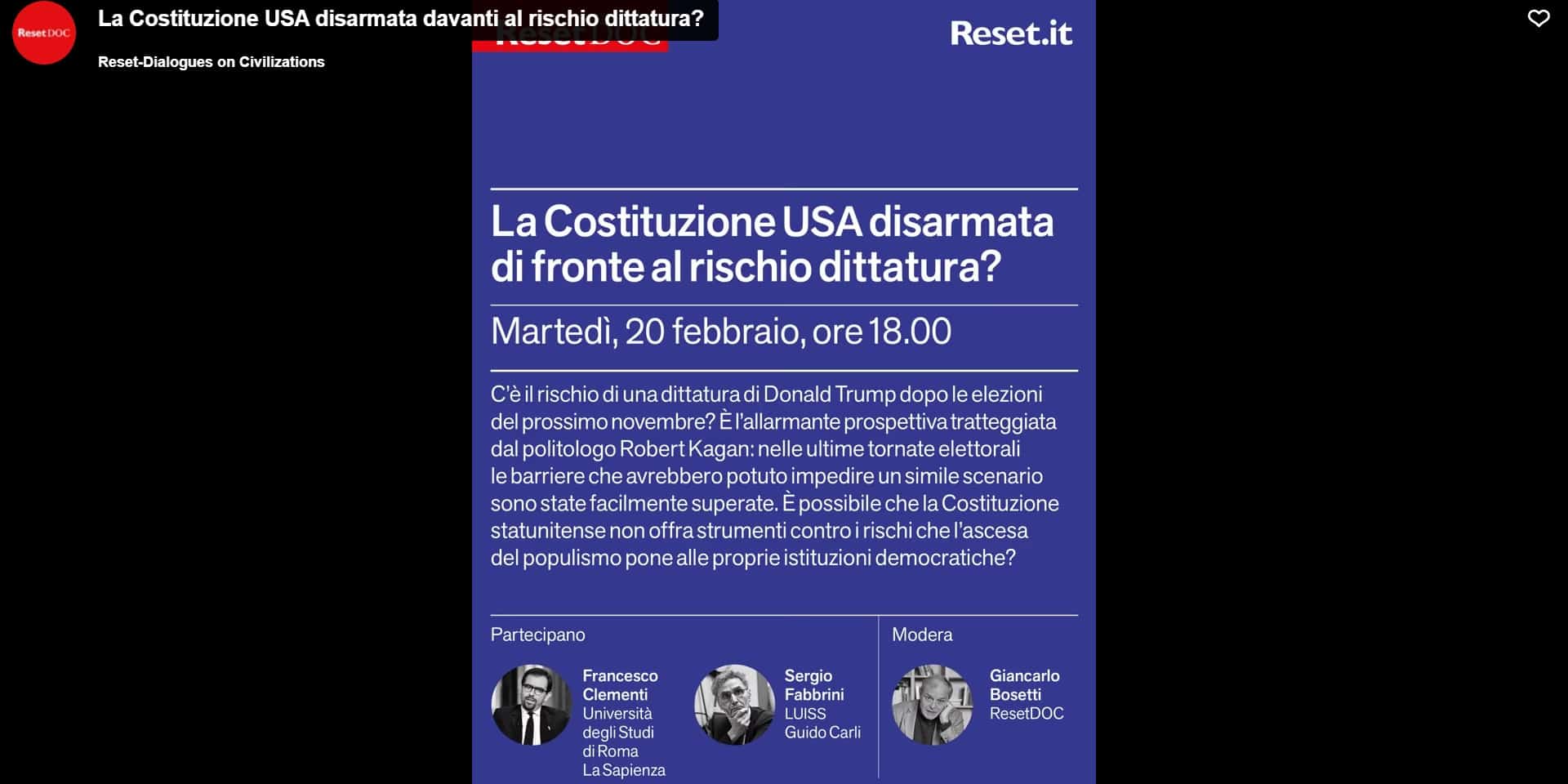 Su questi interrogativi sono intervenuti online il 20 febbraio i costituzionalisti Sergio Fabbrini (Università Luiss) e Francesco Clementi (Università Sapienza). A moderare è stato il direttore di Reset Giancarlo Bosetti.