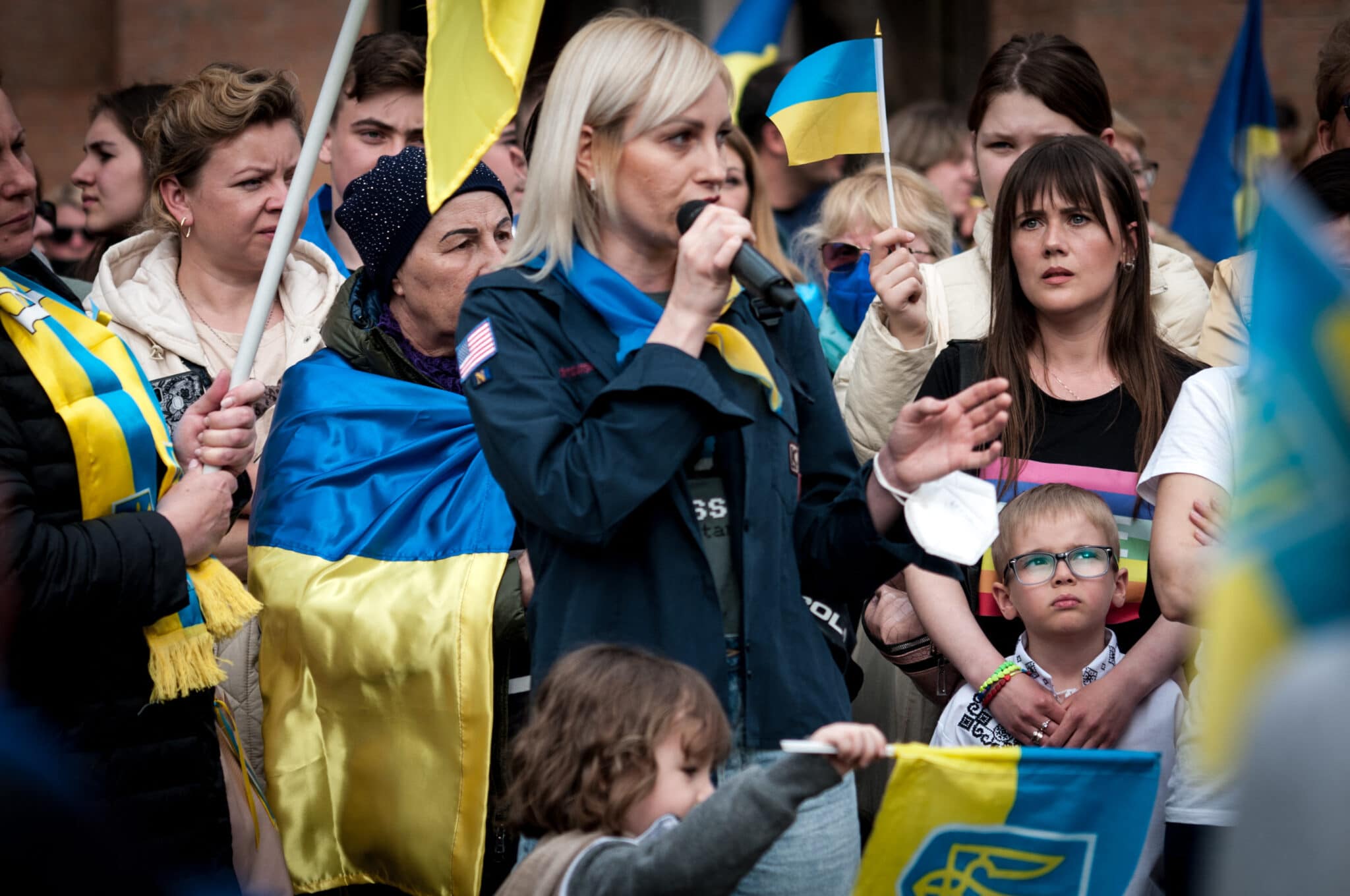 Foto: Una manifestazione di cittadini ucraini contro l’invasione russa – Roma, 27 marzo 2022 (Andrea Ronchini / NurPhoto via AFP).