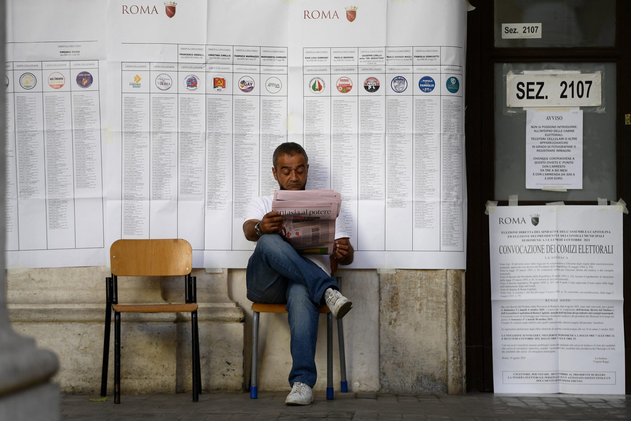 Foto: Un seggio semi-deserto di Roma – 3 ottobre 2021 (F. Monteforte / AFP).