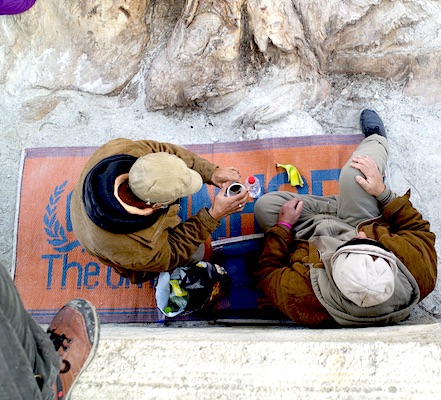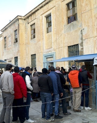 I suoi ospiti vi si fermano soltanto per quei pochi giorni necessari alle autorità greche per il rilascio dei fogli di via, preziosi documenti con cui è possibile acquistare il biglietto del traghetto per Atene e da lì proseguire lungo la famigerata rotta balcanica. Oltre alle tre nazionalità già menzionate, il campo accoglie anche sparuti gruppi di altra origine – principalmente giovani marocchini, algerini e iraniani – la cui appartenenza al novero dei “migranti economici” tipicamente impedisce di continuare il viaggio con la stessa speditezza dei richiedenti asilo. Allo stato dei fatti, per loro l’unica alternativa alla deportazione è proseguire clandestinamente o rimanere bloccati a oltranza: la frustrazione monta nel corso delle settimane e non mancano quelli che, per la disperazione, ricorrono a gesti di protesta o di autolesionismo. La maggior parte, va detto, affronta con grande spirito la propria complessa situazione, integrandosi nella vita del campo e dando un fondamentale contributo al suo funzionamento.