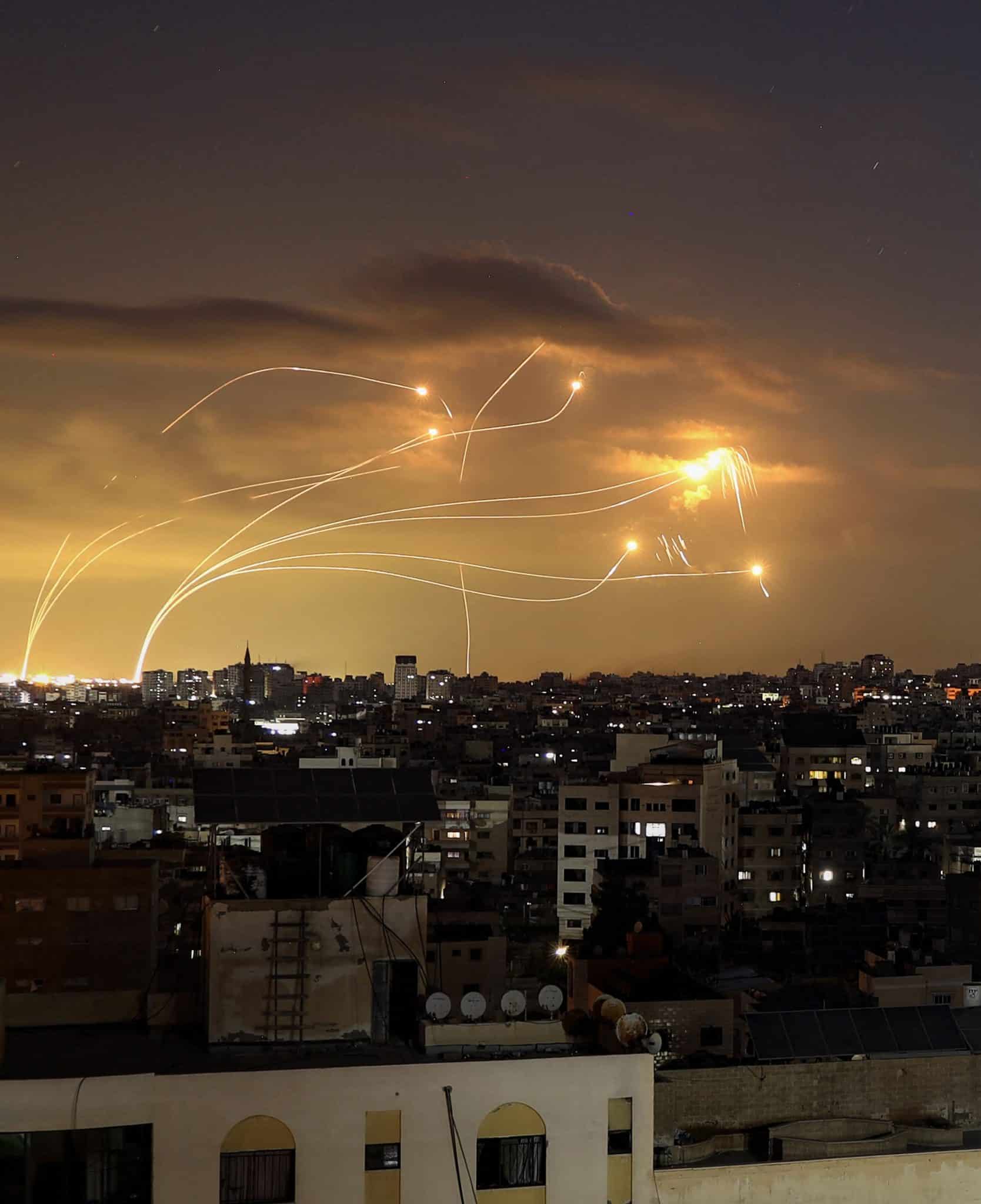 Immagine di copertina: alcuni razzi sparati da Gaza vengono intercettati dal sistema di difesa missilistica israeliano Iron Dome, 10 ottobre 2023 (foto di Eyad Baba/Afp).