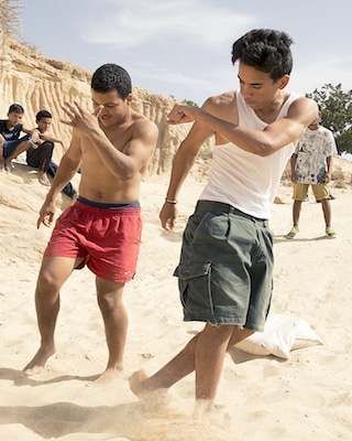 Adem, vent’anni e una testa piena di capelli ricci, si è avvicinato alla breakdance a diciassette, quando – al matrimonio del cugino – ha visto un suo compagno di scuola ballare. “Ci alziamo presto qui in montagna. In estate alle cinque, appena c’è luce e fa più fresco, ci troviamo qui alla grotta per allenarci. Durante le vacanze estive, tutti i giorni, anche la sera verso le cinque. Durante l’inverno, nei fine settimana e dopo la scuola, finché non fa buio noi continuiamo”. Con Halim, Anwar e Skander, ha deciso di non aspettare l’intervento dello stato, ma di farsi strada da solo nel panorama artistico tunisino, attingendo esclusivamente ai propri mezzi, esigui ma potenti: la passione per la danza, un cellulare e tantissima energia.