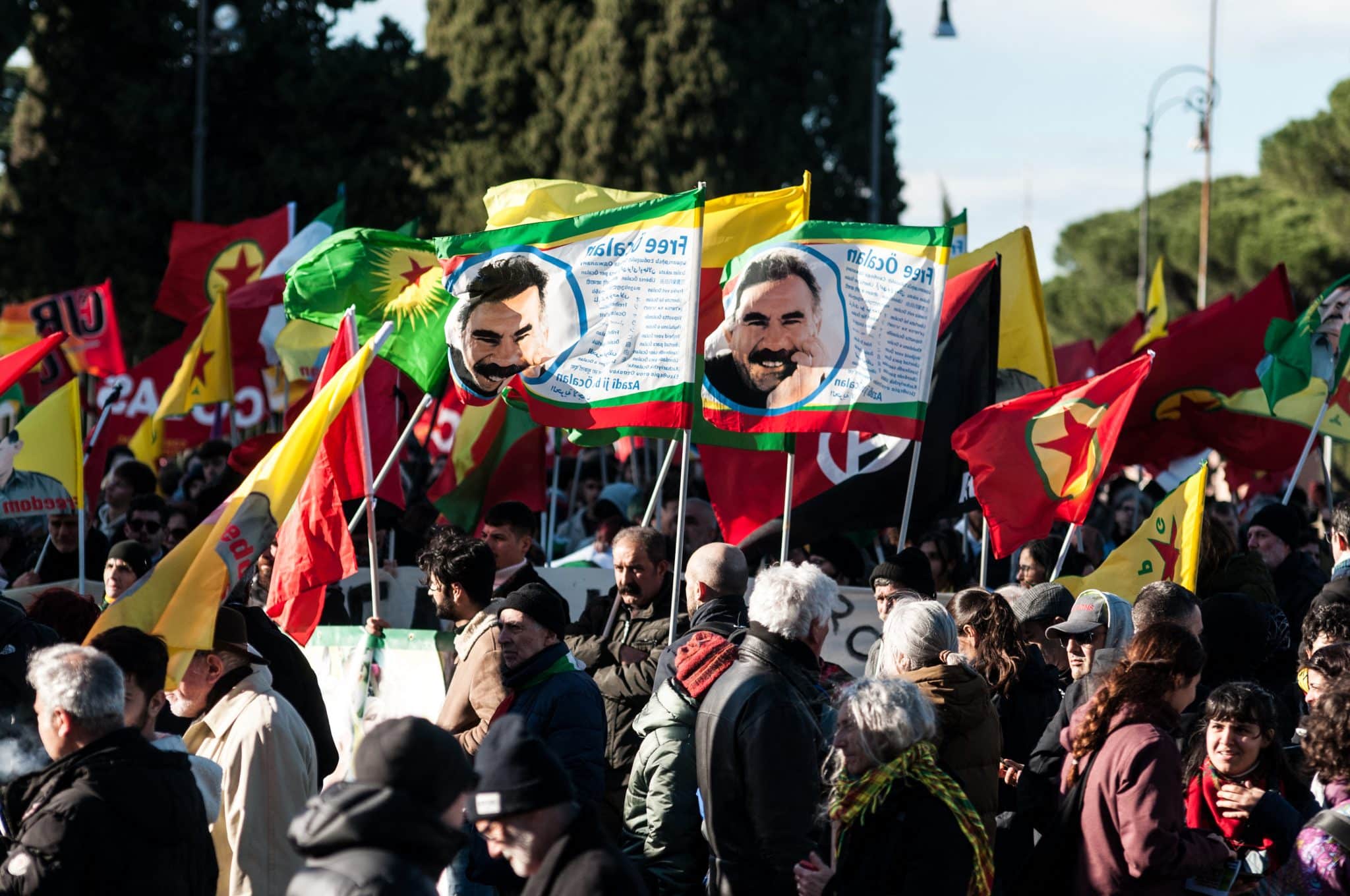 Immagine di copertina: la foto di una manifestazione per il Kurdistan a Roma, il 15 febbraio 2025. Sulle bandiere il ritratto di Ocalan. (Foto di Andrea Ronchini / NurPhoto / NurPhoto via AFP)