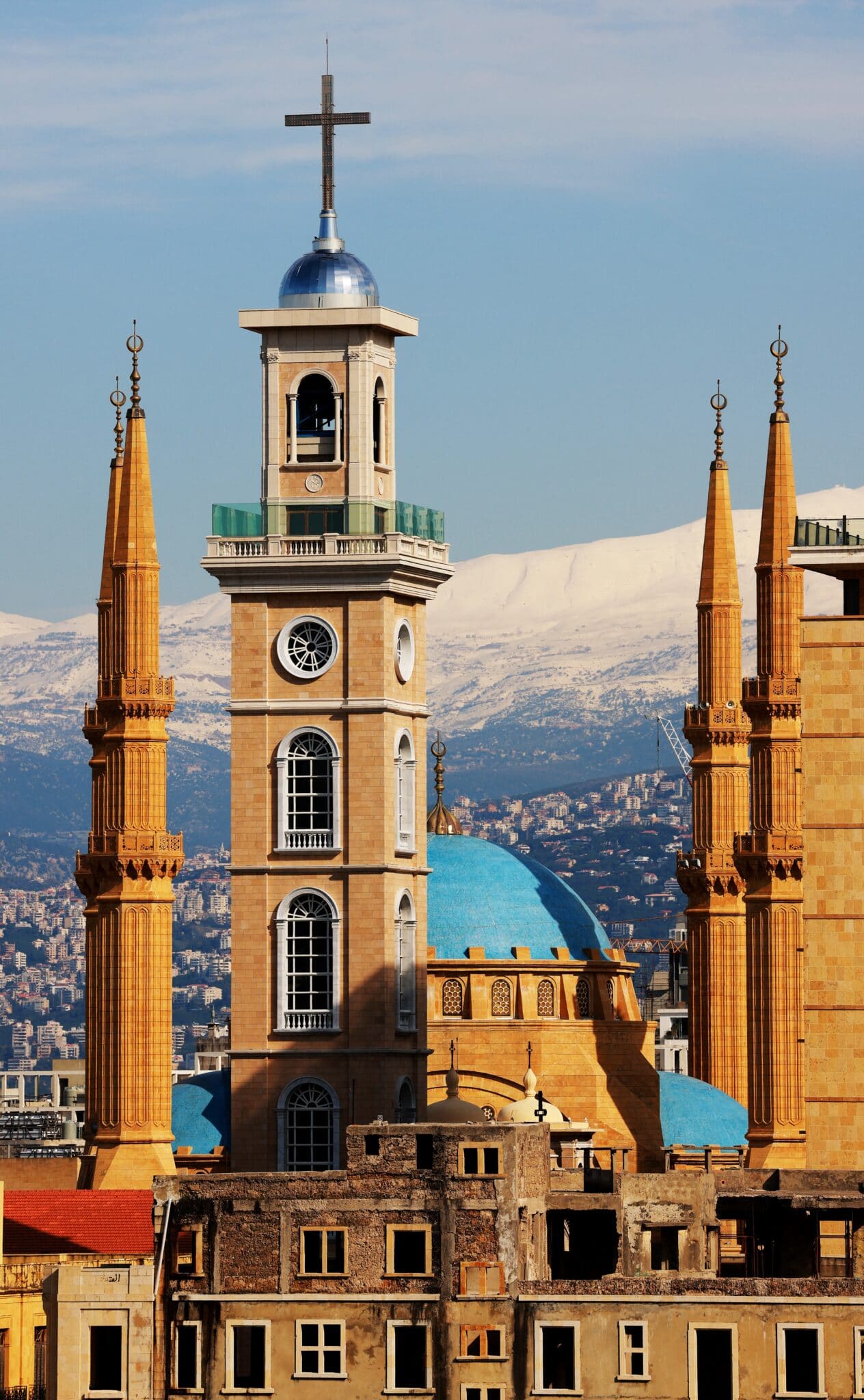 Foto: La chiesa maronita di San Giorgio e la moschea Mohammed al-Amine a Beirut (Joseph Eid / AFP).