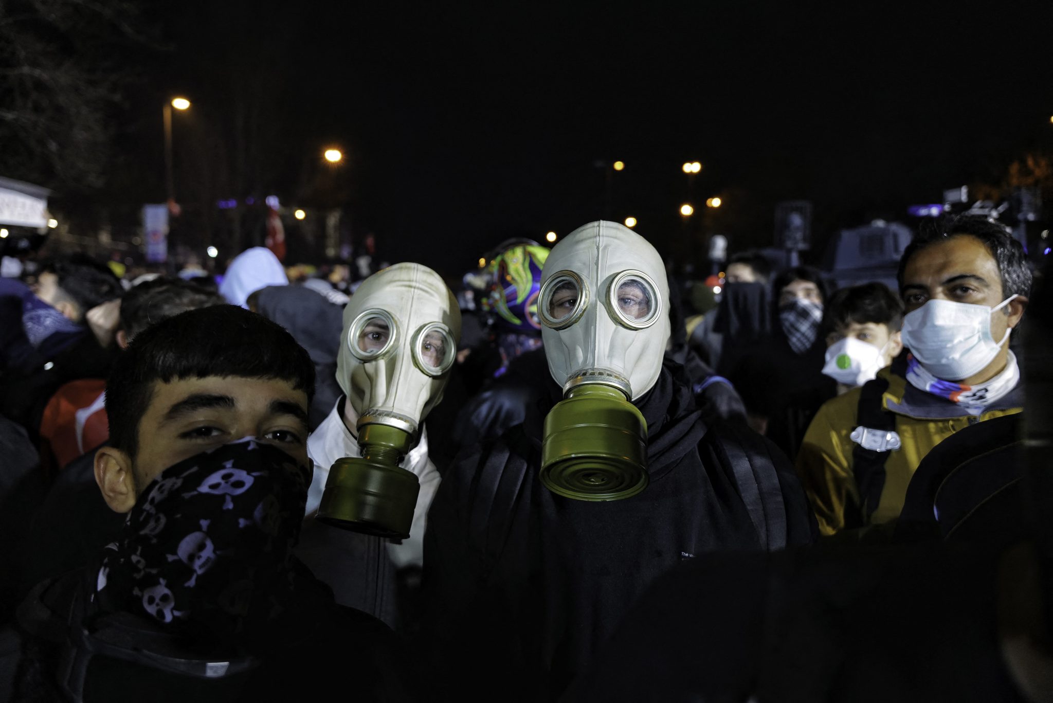 Immagine di copertina: due manifestanti indossano delle maschere antigas durante una protesta per il rilascio del sindaco di Istanbul, il 25 marzo 2025. (Foto di Laurin Strele / Middle East Images via AFP)