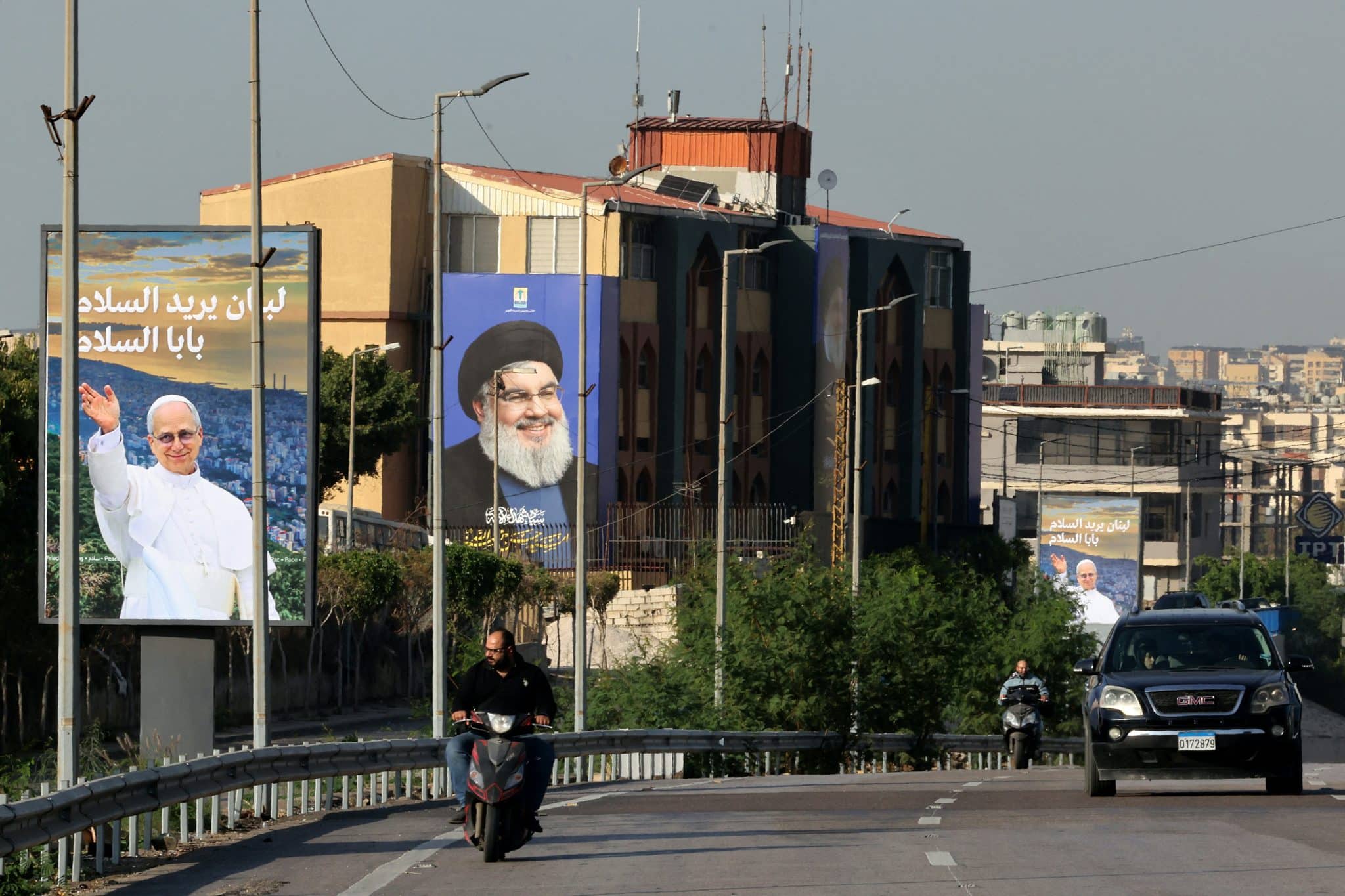 Immagine di copertina: due poster pubblicitari che ritraggono Papa Leone XIV alla vigilia del viaggio a Beirut e il leader di Hezbollah Hassan Nasrallah, ucciso da Israele nel settembre del 2024. (Foto di Anwar Amro / AFP)