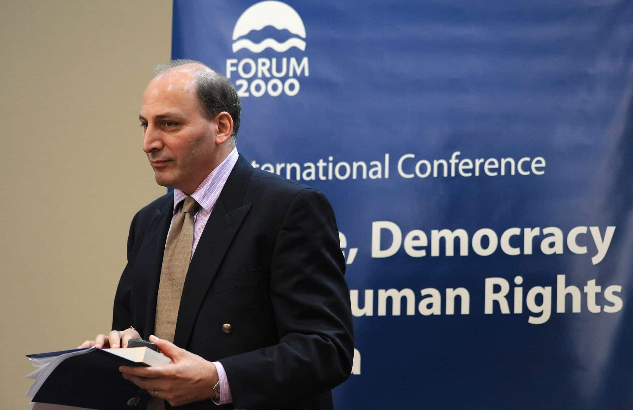 Immagine di copertina: Ramin Jahanbegloo a un evento a Praga l’11 settembre 2009. (Photo by Michal Cizek / AFP)